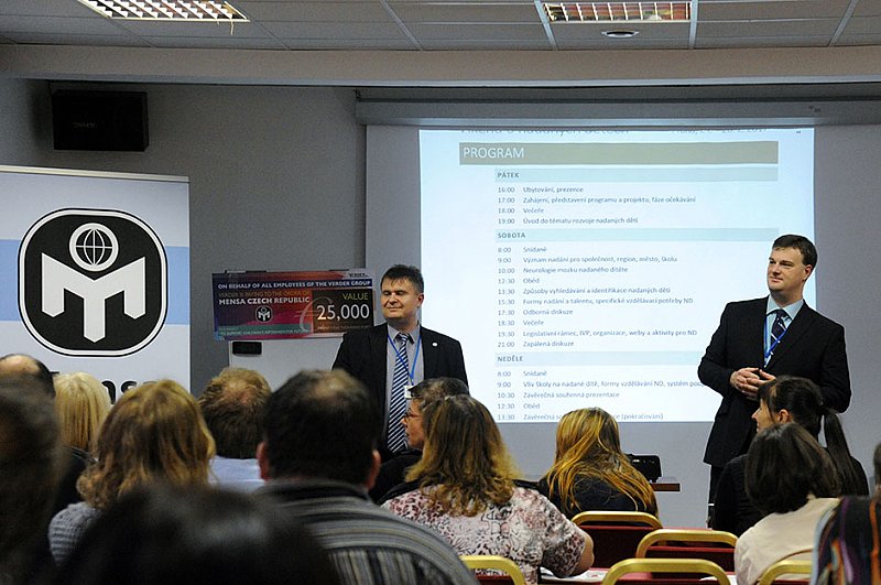 Setkání lidí, kteří se sdružují kolem Mensy, však předčilo mé očekávání. Hned v pátečním odpoledni proběhlo defilé řečníků a témat týkajících se nadání, jeho podchycení, diagnostiky, typů, možností, forem a metod práce, řešení v rámci školy, mimo školu, pomoc rodičům, ale i konkrétní pomoc učitelům.