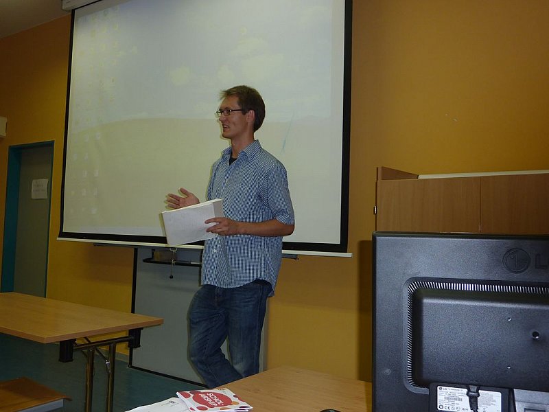 Přednášející Mgr. Mphil. David Antoš, absolvent univerzity v Cambridge oboru Ekonomie, nynější student Univerzity Karlovy oboru Práv, vyvrátil našim studentům mýty o financování i potřebných vědomostech, nastínil cesty k různým programům a grantům, jichž mohou budoucí vysokoškoláci využít, odpovídal ochotně na dotazy týkající se srovnání českého a britského školství a nabídl své pestré zkušenosti se životem českého studenta v zahraničí.