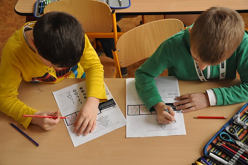 Nejsme ve výtvarném kroužku, ale při klubových mozkových rozcvičkách. Úkolem bylo vykreslit několik různých geometrických obrázků co nejmenším počtem barev tak, aby se sousední pole potkávala maximálně v bodě průsečíků jednotlivých stran. Bylo to zajímavé a vůbec jsme nevnímali ubíhající čas. Naštěstí ho zbylo trochu i na hraní deskových her, kterým mnohé děti vymýšlejí i nová pravidla. Příště až nebo už v březnu. Vyberte si. Hezké předjaří všem.