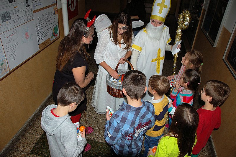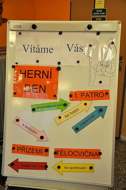 Venku po několika dnech vysvitlo slunce, zdálo by se, že přichází jaro. Ale na naší škole byl Mikuláš. Mikuláš o den dříve? Ano. Na osmém Herním dnu s Mensou. S andělem a čertem rozdával nadílku všem dětem, které si přišly užít odpoledne s hrami, šiframi, skládáním puzzle nebo sportováním.