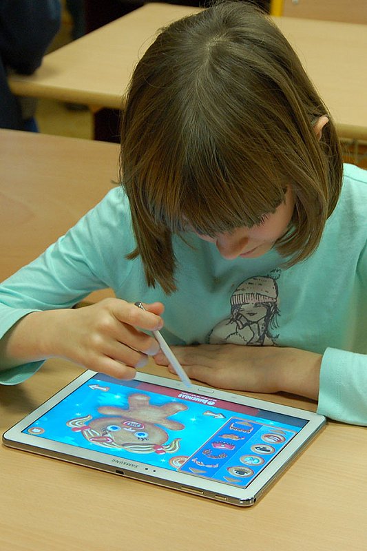 Kdo chtěl, mohl si vyzkoušet stavění sněhuláků nebo pečení perníčků. Nevěříte? Digitální učebna to s pomocí tabletů dovolila a nikomu nebyla zima ani se nespálil při vytahování plechů z trouby.