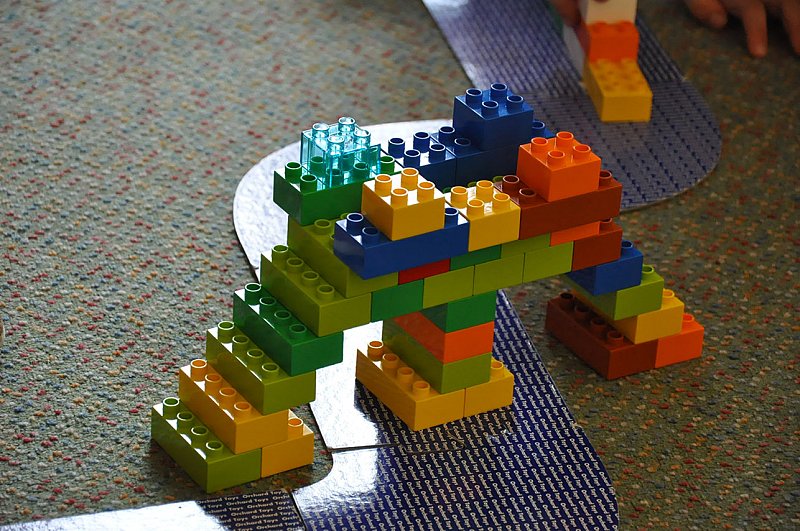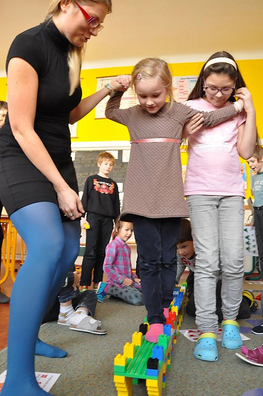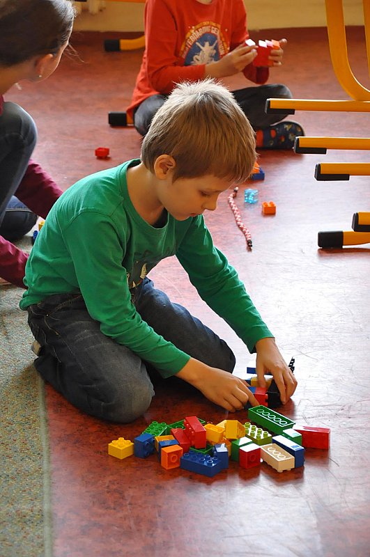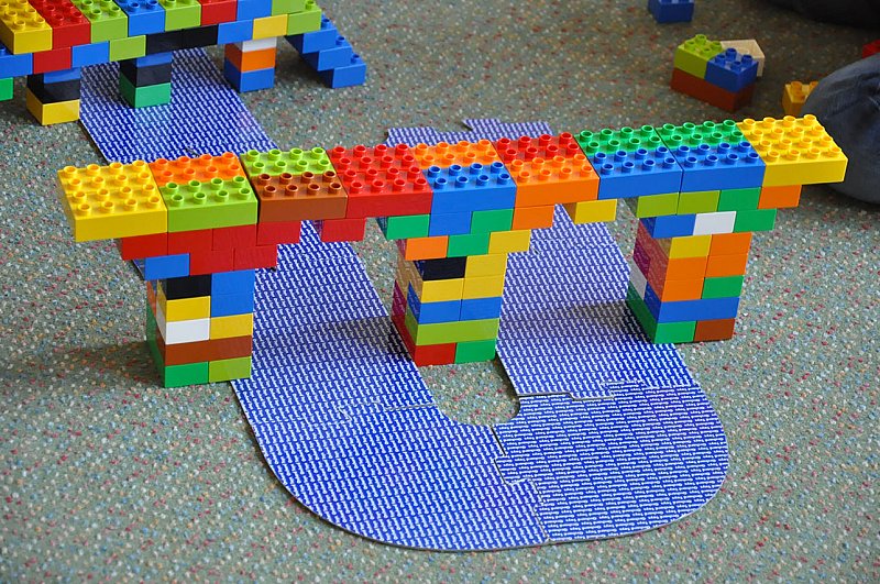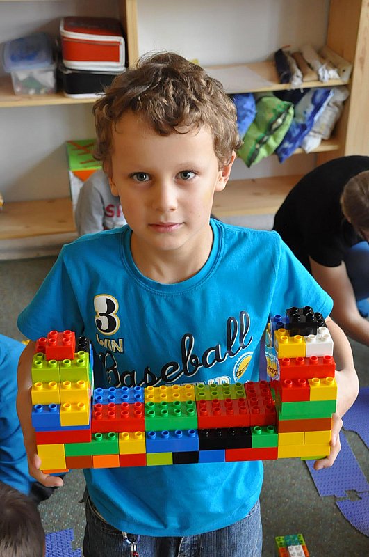 Ten, komu se to povedlo, si dokonce ze zbývajících kostiček přistavěl i nějakou tu lodičku. V závěru našeho setkání se však odehrála opravdová pecka. Každý postavil podle návodu jeden mostní oblouk, společně jsme je pospojovali do jednoho velkého modelu Karlova mostu a představte si, že se po něm dalo skutečně chodit. Prostě, jak nám dáte do ruky hromadu kostiček, architektura se třese v základech.
