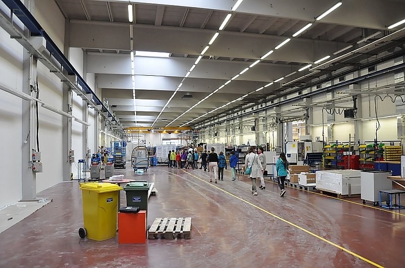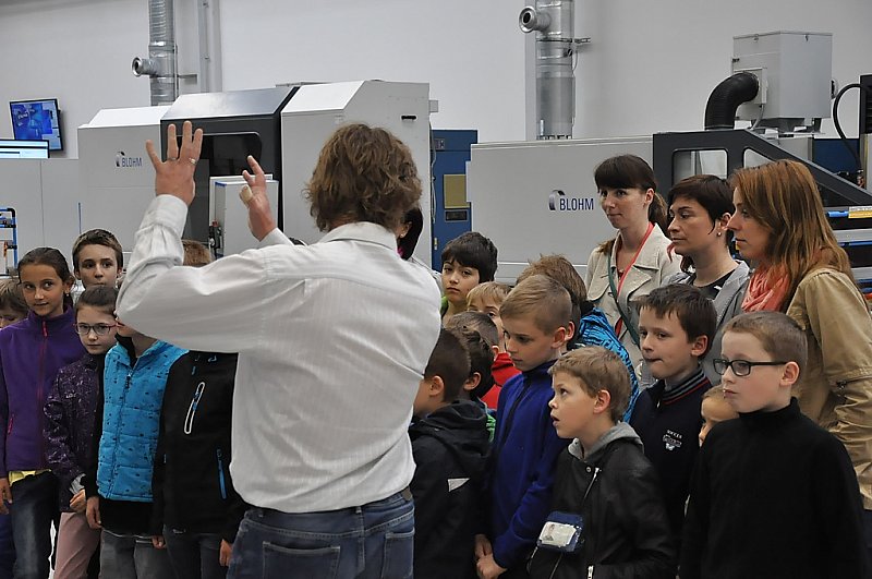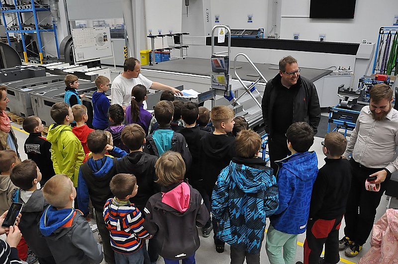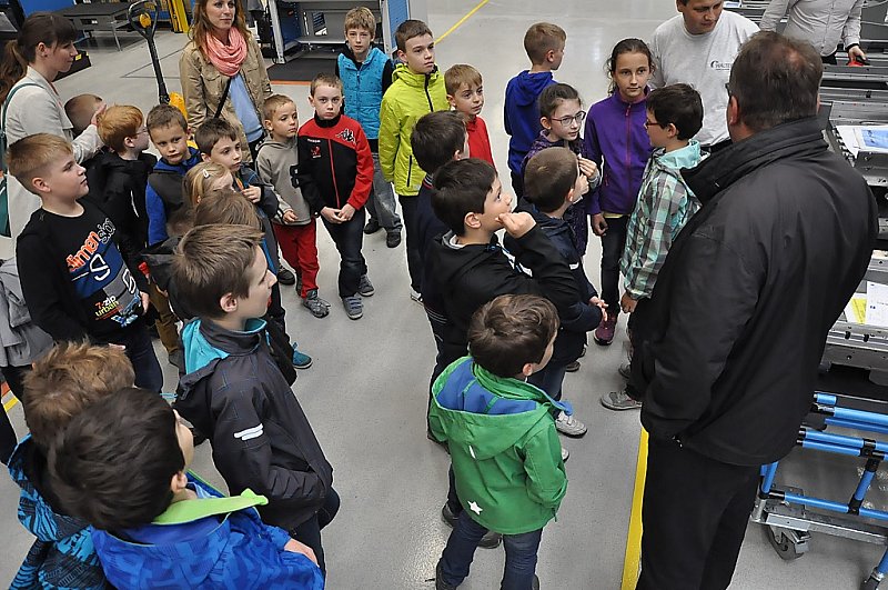 Všichni zaměstnanci, které jsme potkali, měli oči na stopkách, jestlipak ty naše zvědavé ručičky zůstanou tam, kde mají. Také skoro nestíhali odpovídat na příval skutečně zajímavých otázek ke všem strojům, jež jsme viděli v provozu. Jako skuteční profíci nám ručičky zaměstnali papírovou výplní do krabic, „pusiny“ nám zacpal pan architekt dobrotami, a když jsme zhlédli úžasné samočinné skladiště materiálu, nezbývalo, než celí spokojení vyrazit zpět do Brna. Za příležitost vidět něco výjimečného moc děkujeme.