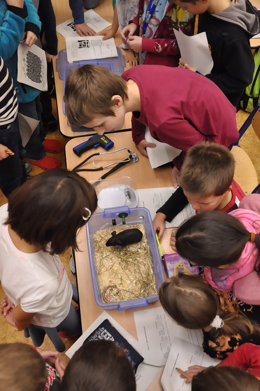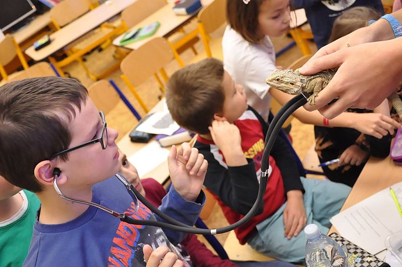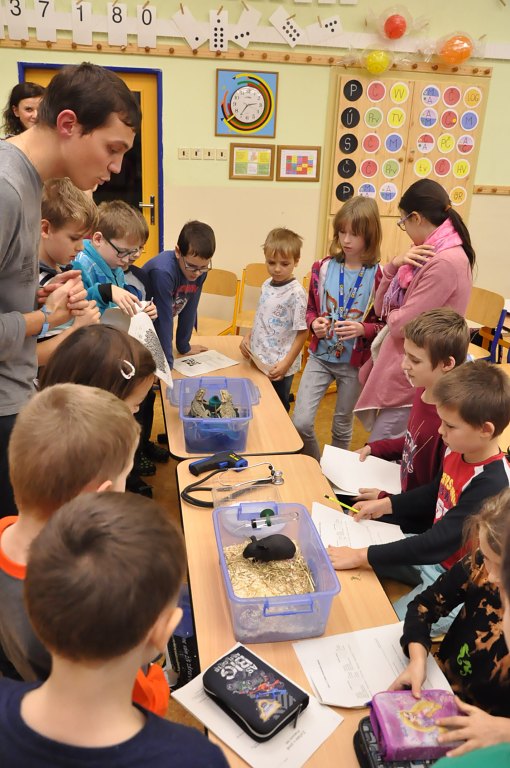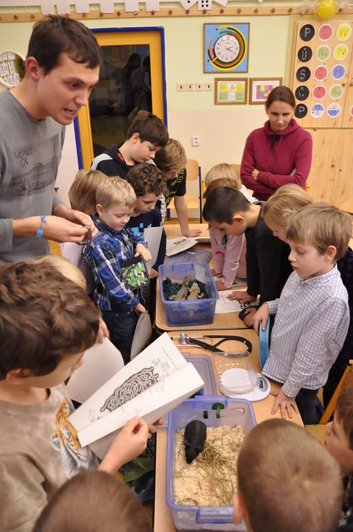 Hvězdami pátečního klubu byly dvě agamy a morče Lysinka. Představte si, že jsme jim měřili teplotu, počet úderů srdce za minutu a také hmotnost. Vysvětlovali jsme si na nich rozdíly mezi teplokrevnými a studenokrevnými živočichy.
