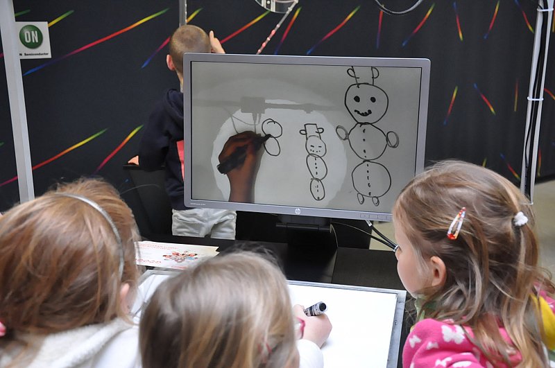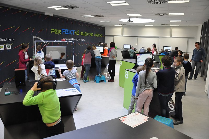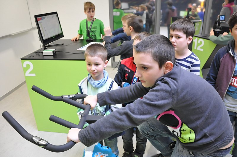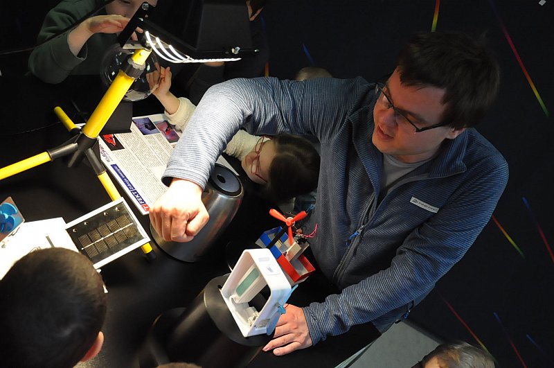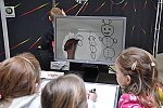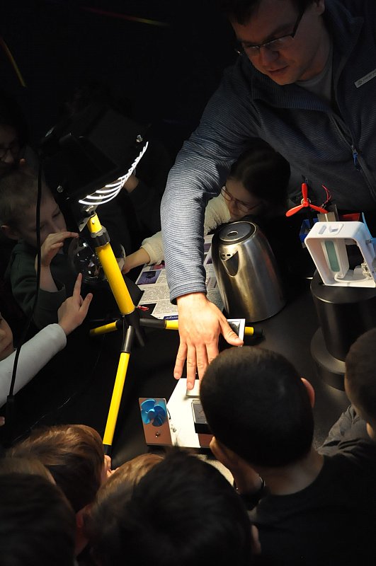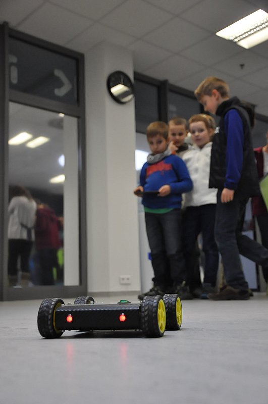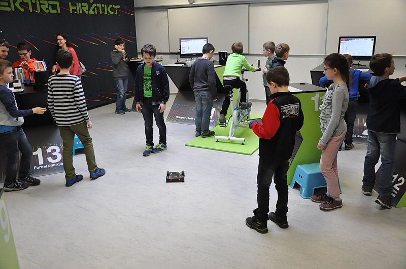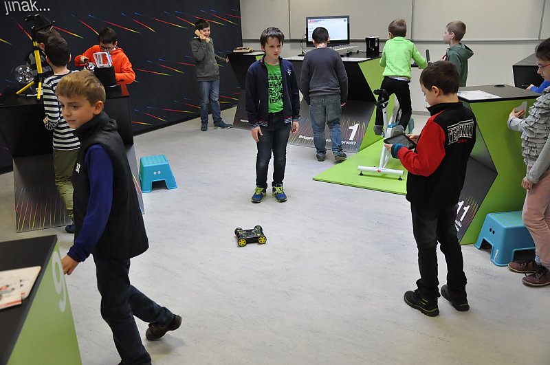 Stalo se tedy, že jsme se stali zdrojem elektrické energie, a to mechanickým i chemickým. Stačí kouknout na fotky a bude vám jasno. Jednoznačným trhákem bylo autíčko na dálkové ovládání tabletem. Divíme se, že v něm vydržely baterky po celou dobu naší návštěvy. A z dalších laserová harfa a třeba telefon z dob minulých – klasická pevná linka. Prostě nevídané věci