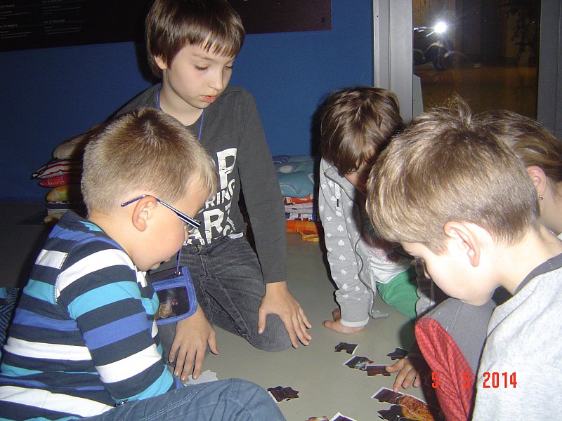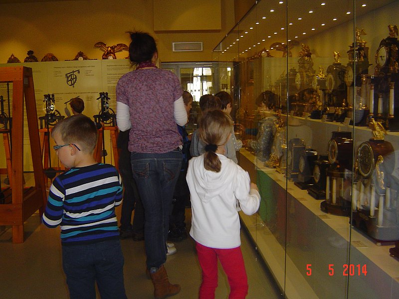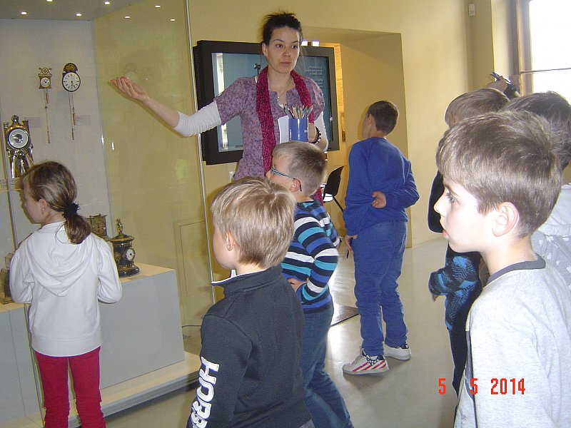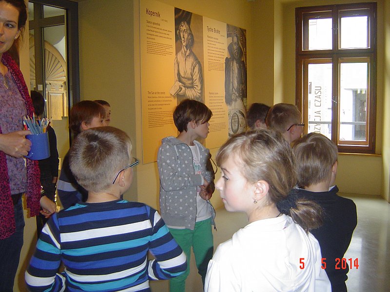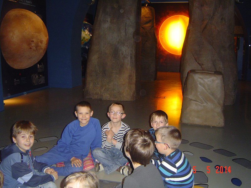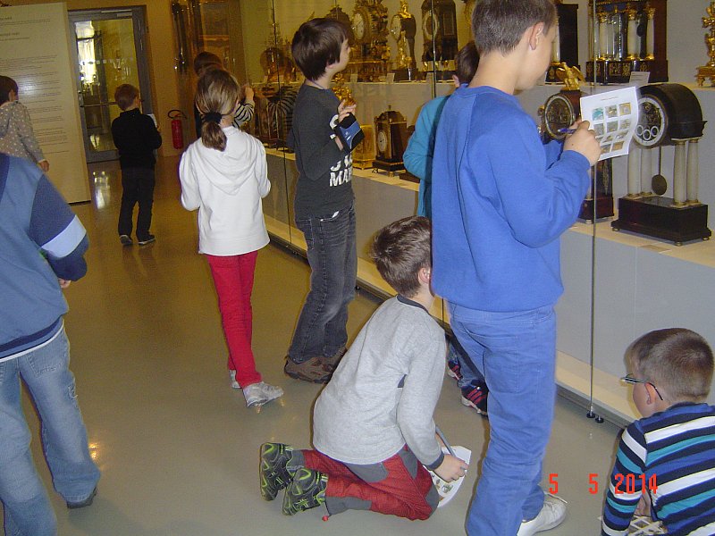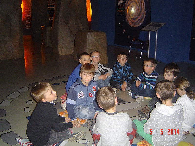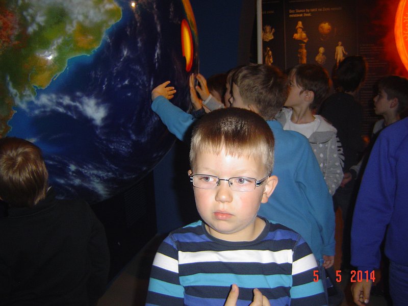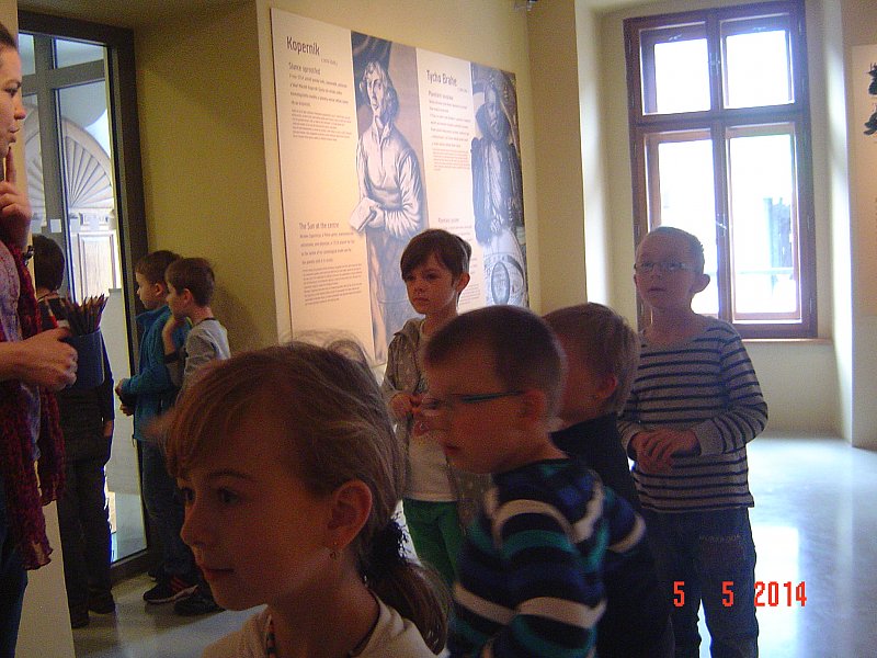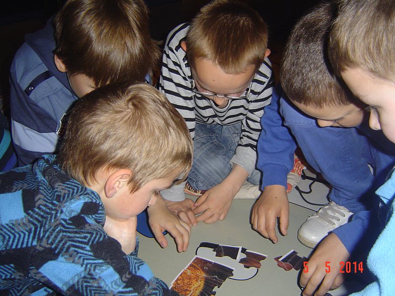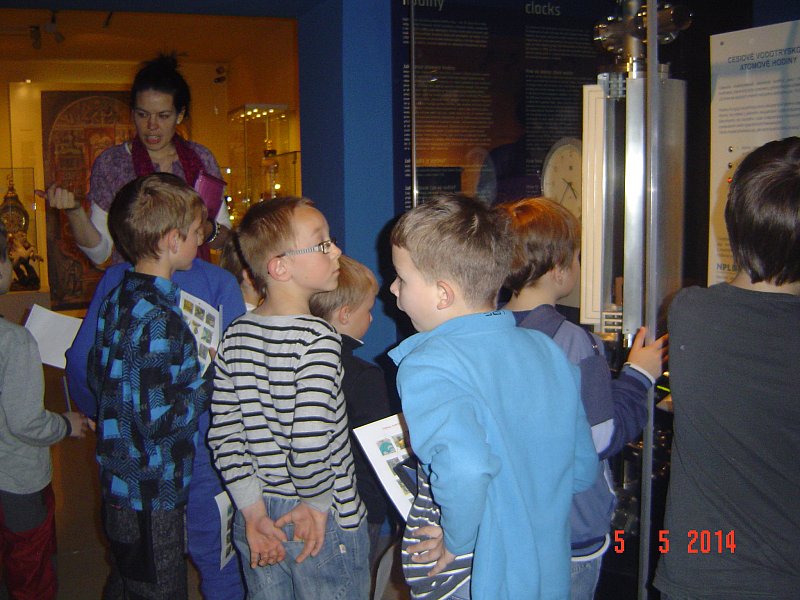 Nejprve jsme se ocitli ve vesmíru. V úvodní besedě jsme se dověděli mnoho nového, ale uplatnili jsme také naše znalosti. Ve hře jsme si zkusili napodobit pohyby planet v naší sluneční soustavě. Pak jsme ji skládali z puzzlí. Na interaktivním panelu jsme umístili na oběžnou dráhu jedlotlivé planety, sáhli jsme si na Slunce, Zemi i Měsíc. Seznámili jsme se s kalendáři různých kultur a národů, s vynálezci a jejich objevy o vesmíru. V expozici hodin jsme se seznámili s funkcí kyvadla, které je základem hodin a tudíž měření času. Na pracovním listu jsme měli detaily hodin a my jsme vyhledávali, ke kterým hodinám patří. Na závěr jsme se vyfotili modelem Hubblova teleskopu.
