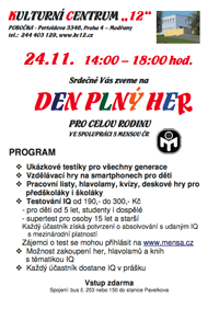 Kulturní centrum „12“ Vás srdečně zve na Den plný her pro celou rodinu.