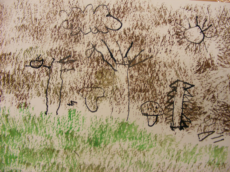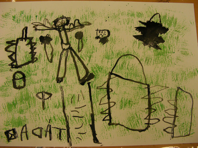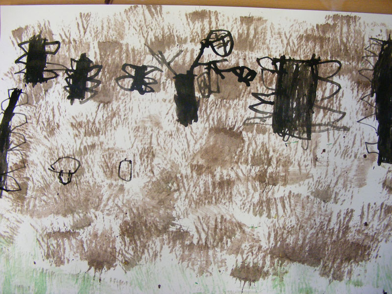 V závěrečné aktivitě jsme procvičovali jemnou motoriku, ale také podporovali rozvoj fantazie, za pomoci obtiskování vlny a kresby tuší do námi vytvořeného podkladu.