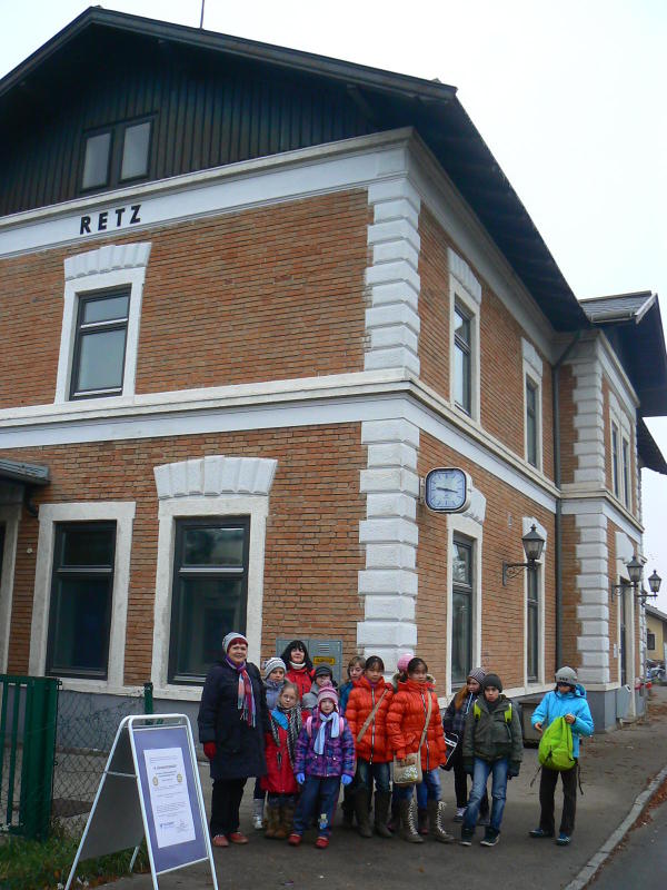 Dne 23.11 jsme se vydali s Klubem nadaných dětí na výlet do Retzu. Jeli jsme vlakem. Byli jsme na hlavním náměstí a pak jsme šli rovnou do podzemí. V podzemí se nám moc líbilo, protože tam bylo tolik zajímavých věcí a vín, nejstarší víno, které v podzemí měli, bylo z roku 1917. Viděli jsme také 10 000 litrový sud, do kterého několik dětí hned vlezlo. Potom tam byl kvádrový sud, do kterého jsme také vlezli. Uvnitř byly krásné skleněné kachličky.