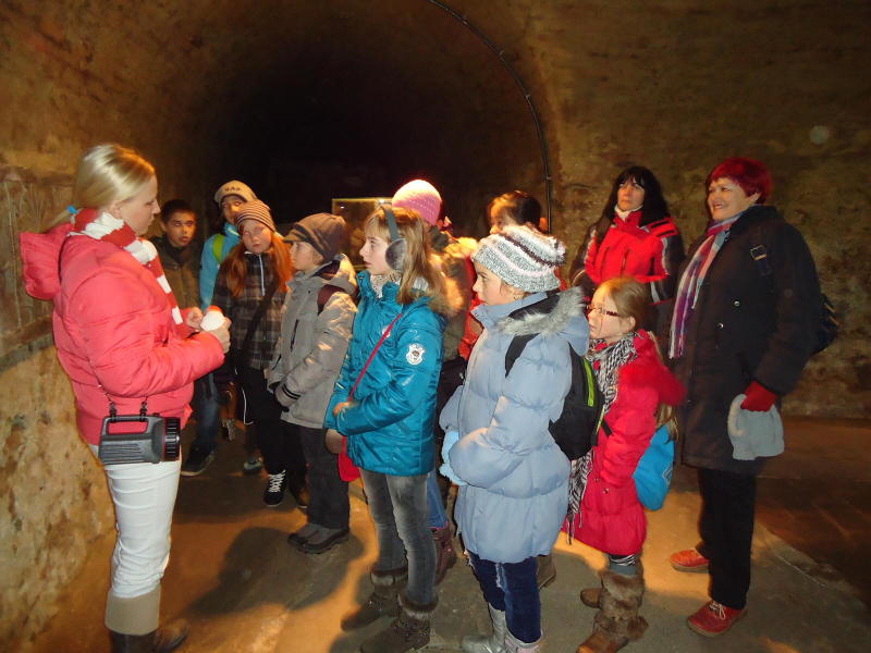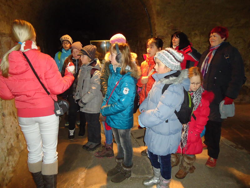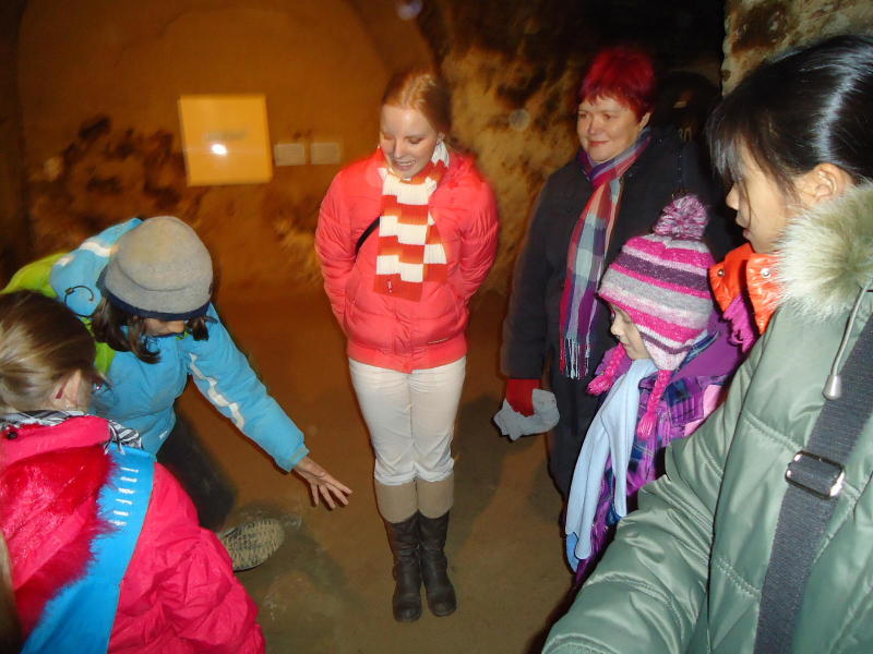 Děti, které v dobách, kdy v sudech ještě zrálo víno, byly schopné vlézt malým otvorem do sudu, musely odstraňovat vinný kámen a říkalo se jim špunti. Také jsme přišli na malou pískovou pláž a tam jsme se vyřádili. Byli jsme celí od písku. Na konci podzemí jsme každý dostali hroznový mošt. Všem nám chutnal. Potom jsme před cestou domů zašli do dopravní kanceláře, kde jsme se dozvěděli, co mají zaměstnanci na práci a jaké mají vybavení. Domů jsme zase jeli dvoupatrovým vlakem. Výlet se nám moc líbil!