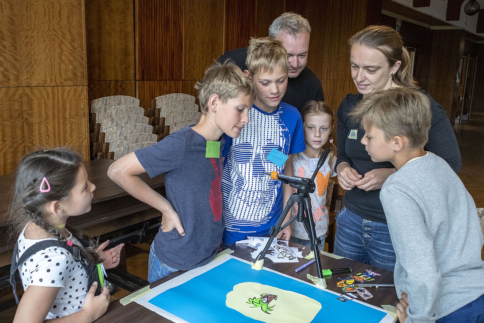 Dopoledne od 10:00 hodin ve velkém sále kulturního domu proběhly dvě „velké vědecké přednášky“ následované odpolední sérií workshopů. A na závěr celé konference se děti mohly samy prezentovat svými ručně vyrobenými plakáty o tématech dle svého zájmu v rámci poster-session.