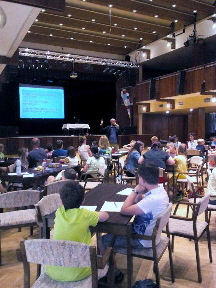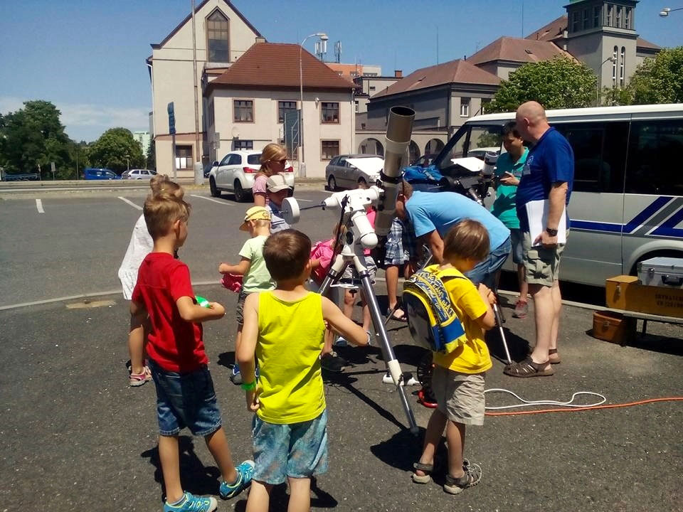 V sále se sešlo hned dopoledne přes 80 účastníků. Po úvodní přednášce na téma osobní historie každého z nás vystoupil ředitel plzeňské hvězdárny pan Lumír Honzík s veleúspěšnou přednáškou o Slunci a blízkém vesmíru, plnou úchvatných fotografií a informací. Hned po dopoledních přednáškách se rozběhly workshopy. Účastníci si předem vybírali dle svého zájmu až 5 z 12 nabízených atraktivních témat, mezi nimiž nechybělo pozorování Slunce slunečními dalekohledy, stanoviště Techmanie Plzeň, chemická laboratoř, entomologické centrum, pájení vlastních světýlek, Lego roboti, jazykové hrátky aj. Workshopy běžely vždy 25 minut pro skupinky max. 15 dětí. Nadšené byly nejen děti, ale i samotní lektoři.
