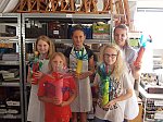Děvčata si vyzkoušela práci s barvami, zpracování recyklátu, použití tavné pistole, a co je podstatné, odpoledne si náležitě užila. Dvouhodinovku jsme uzavřeli soutěží v rýmovačkách, která nám zkrátila čekání na dokončení posledních výrobků.
