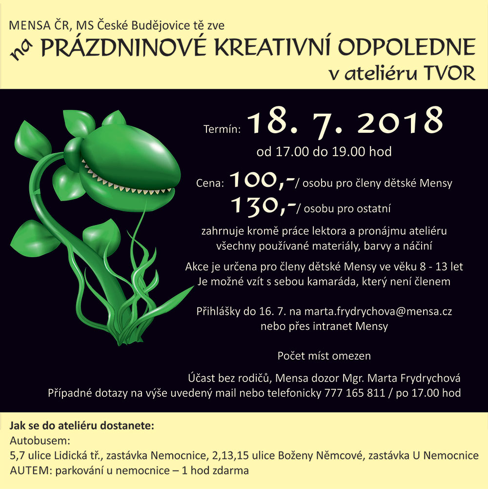 Prázdninové kreativní odpoledne (SIG Jihočeské nadané děti) 18.7.2018 Marta Frydrychová |