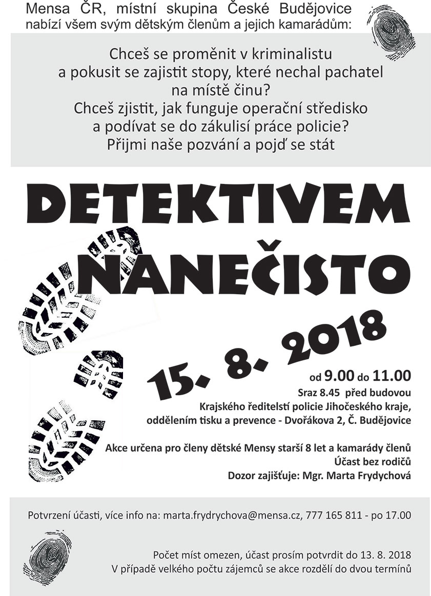 Detektivem nanečisto (SIG Jihočeské nadané děti) 15.8.2018 Marta Frydrychová |
