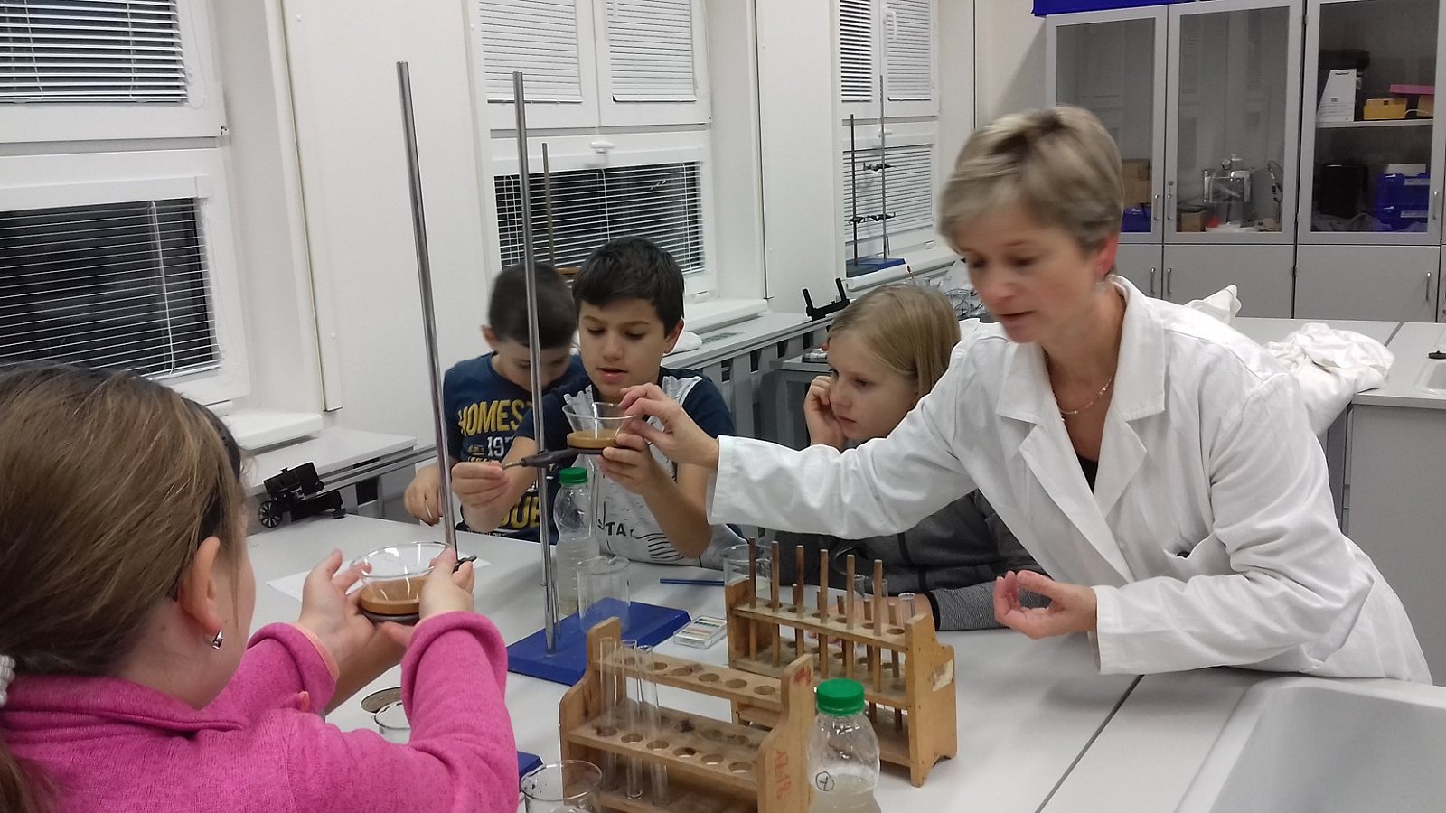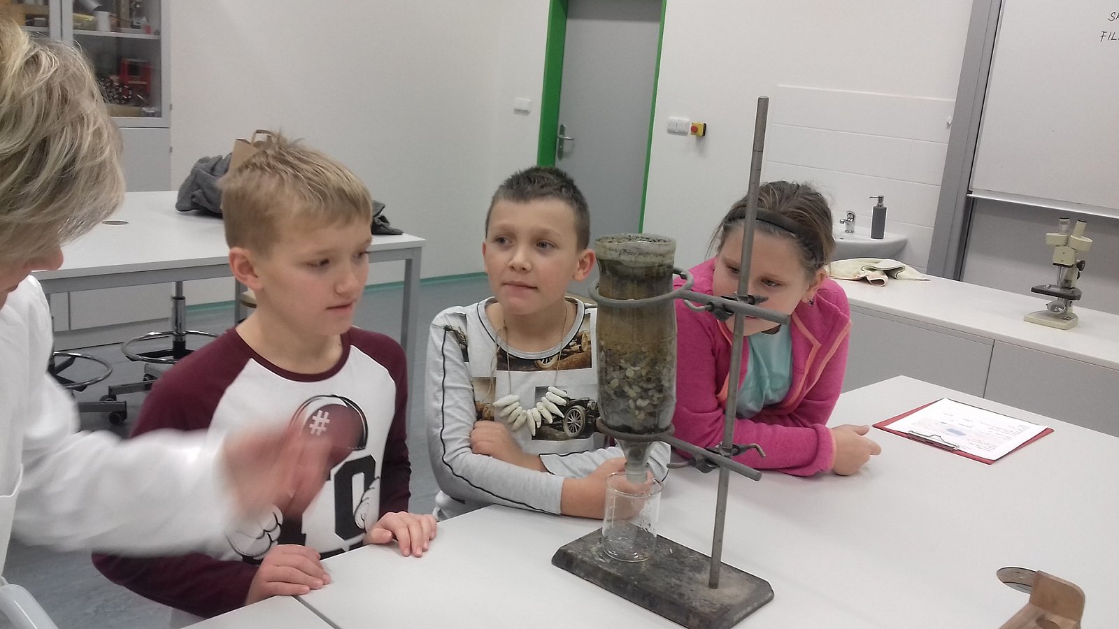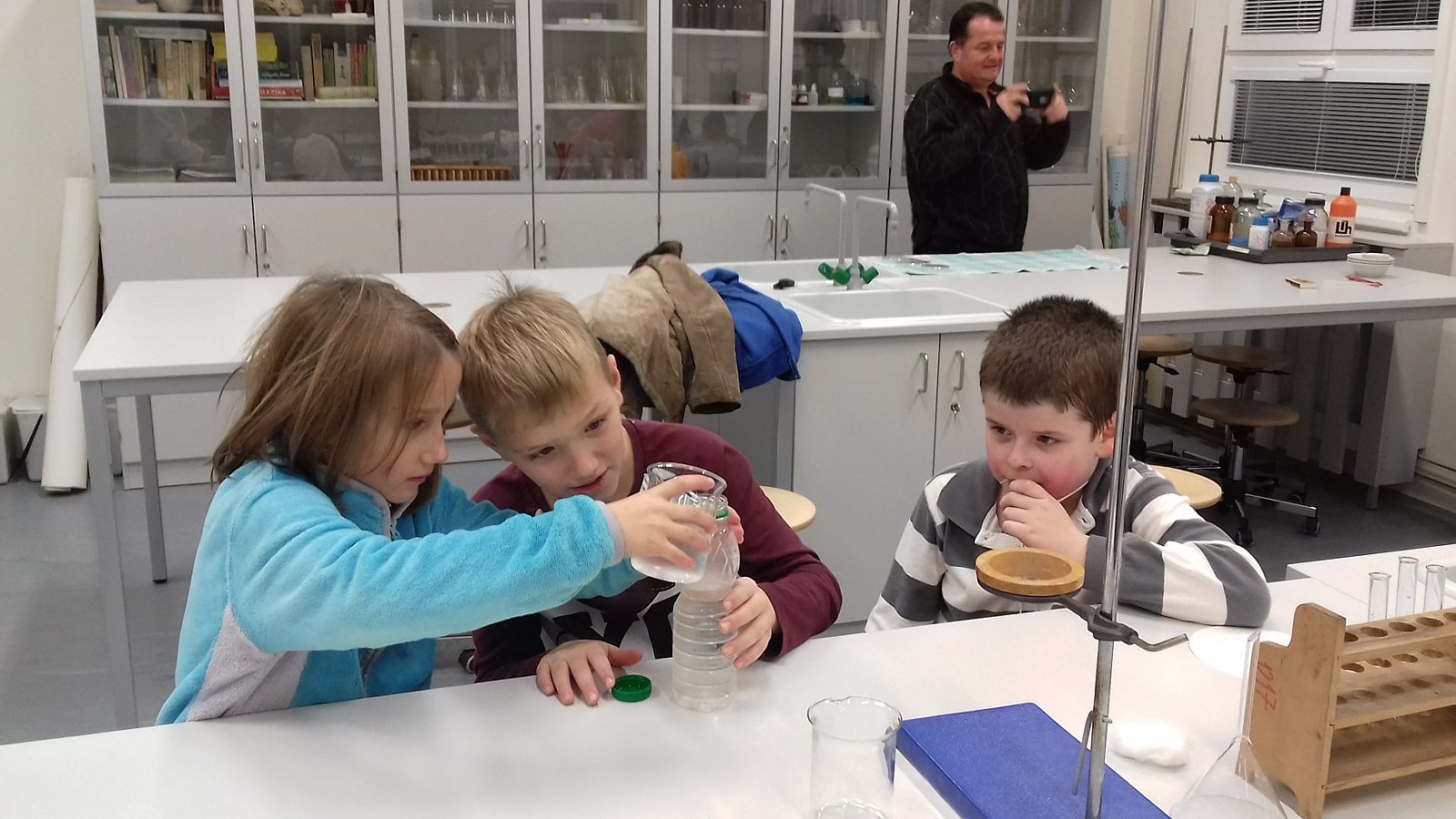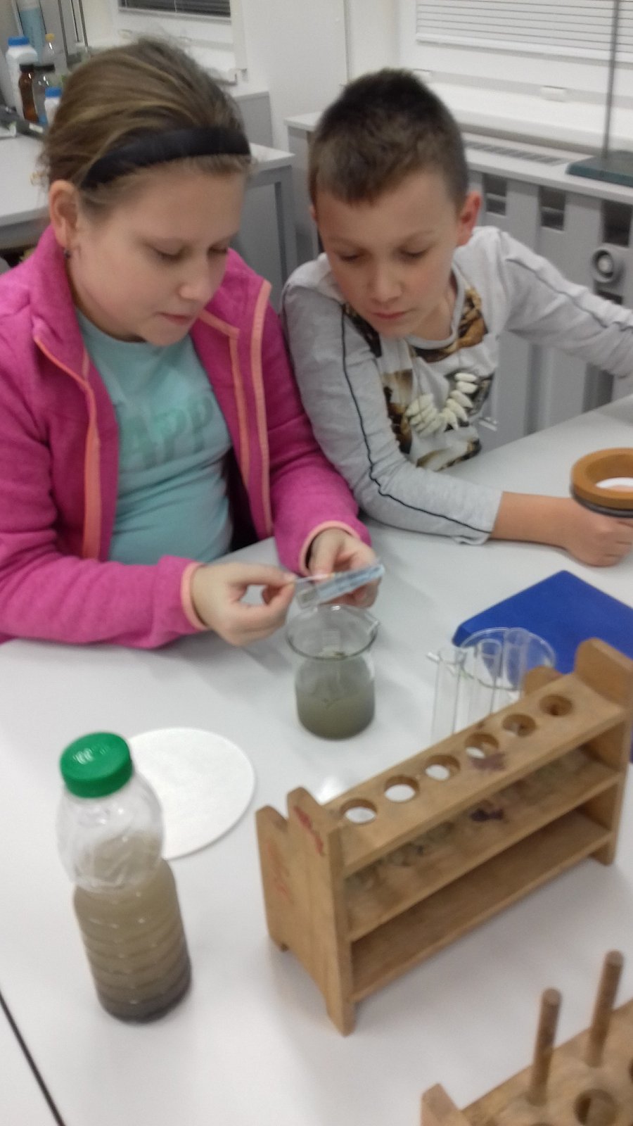 Dnes jsme v KND odebírali vzorky vody z rybníku a následně je zkoumali a filtrovali v laboratoři ve škole s p.učitelkou Kopeckou. Měli jsme možnost používat i mikroskop. Chemie je rozhodně zajímavá!