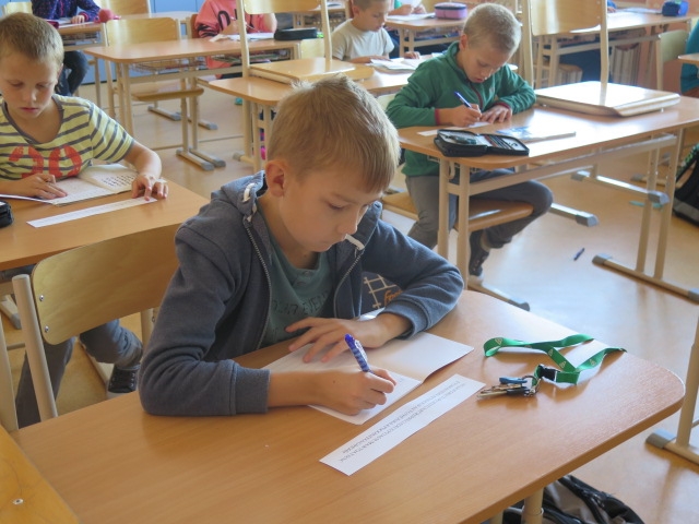 Na první schůzku „Chytrých hlav“ – jak říkají někteří členové – dorazilo 16 dětí z prvního stupně. Sešli jsme se ve třídě 5. D, kde všichni obdrželi úvodní šifru.