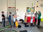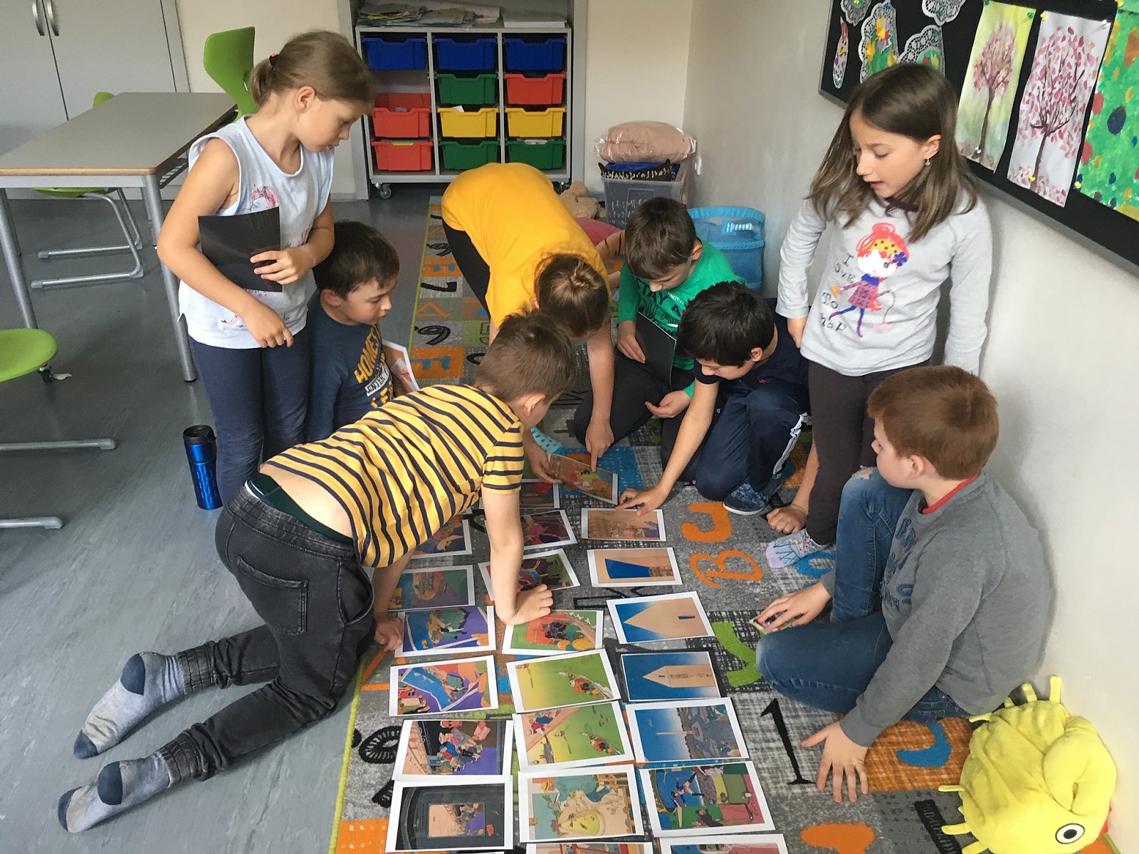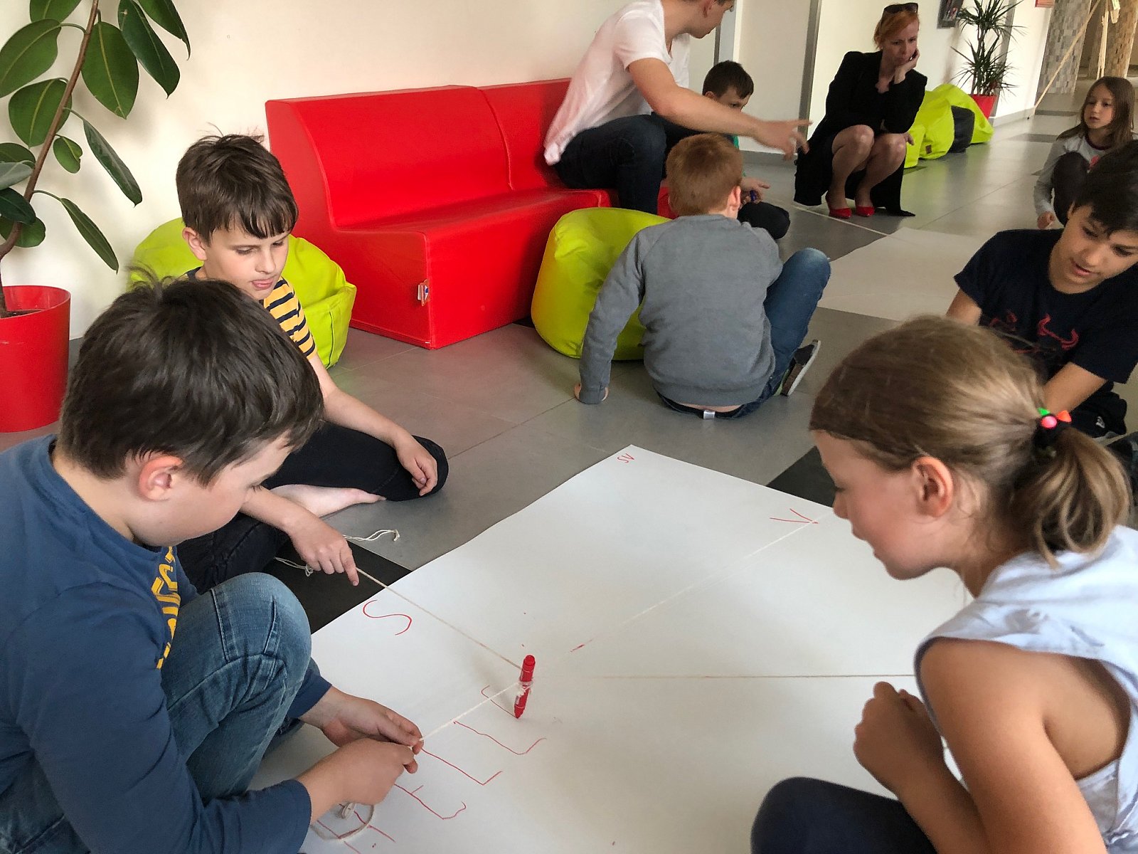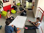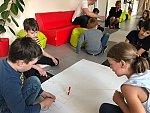 Nestihli jsme letadlo a tak si dáváme pauzu doma a bystříme své smysly na další cesty. Každý cestovatel musí být dobrý pozorovatel, občas si něco musí propojit a domyslet - to přesně a ještě něco víc, vyžadovala hra ZOOM. Bez spolupráce to nepůjde, to jsme zjistili už mnohokrát a tak trénujeme společné psaní jednou tužkou (a navíc ovládanou 4 provázky!?). Mozek jsme si málem zavařili když jsme se museli naučit Žáčkovy básničky. A jako by to nestačilo, byly po celé škole a hlavně jsme to museli pak naučit svého parťáka ve dvojici, který nesměl udělat chybu... No a nakonec trochu gymnastiky - poznáte náš vzkaz?