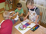 V závěrečné aktivitě jsme kolorovali předkreslené postavy dětí ze 6 kontinentů, inspirované společenskou hrou „Děti světa“.