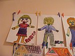 Následně jsme umísťovali kartičky k odpovídajícím dřevěným panáčkům zobrazujících šest dětí z různých kontinentů a mluvili jsme o tom, co je pro který kontinent typické a kam kartička patří.