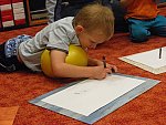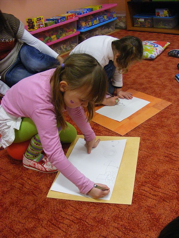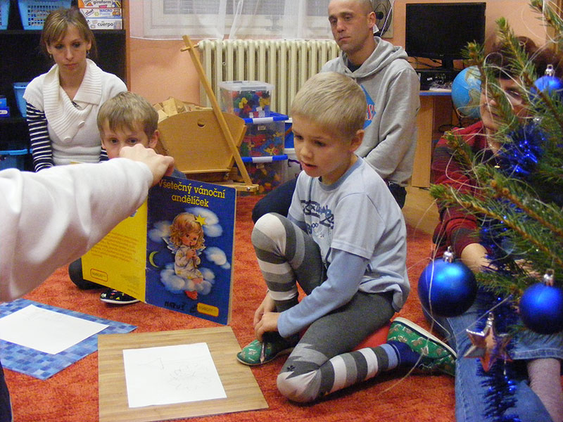 Jelikož bylo aktuálně v době předvánoční, četli jsme si příběh „O všetečném vánočním andělíčkovi“ a k němu kreslili obyčejnou tužkou obrázek.