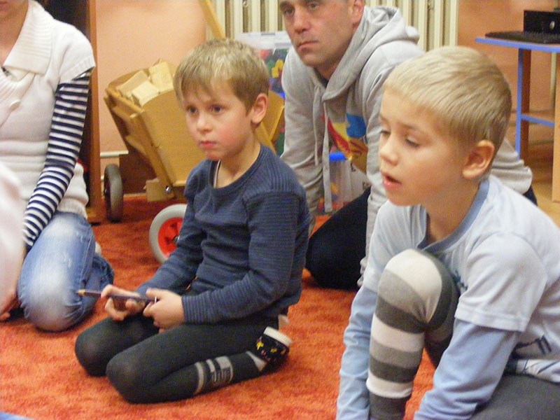 Poslední den ve školce v kalendářním roce 2012 jsme se sešli v 18.00 v naší třídě, abychom se rozloučili se starým rokem. První část byla společná pro děti a rodiče, závěrečné nocování ve školce pak bylo záležitostí jen dětí.