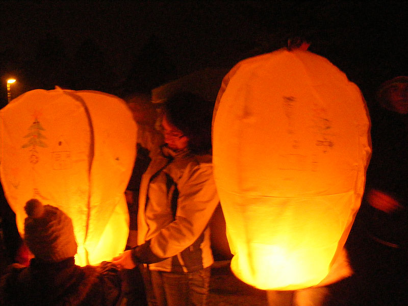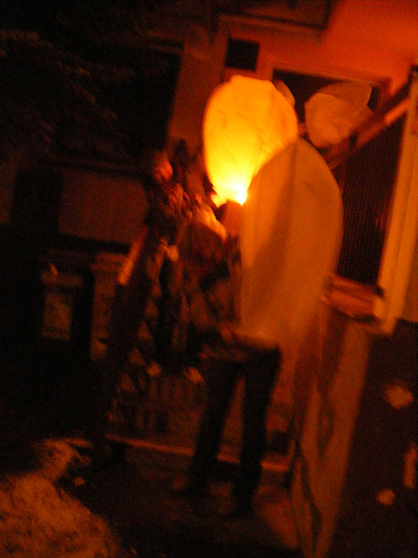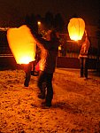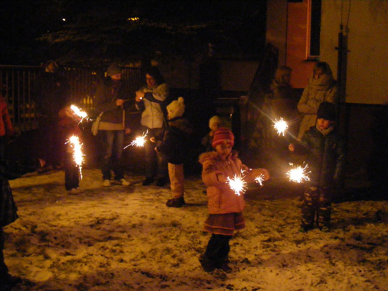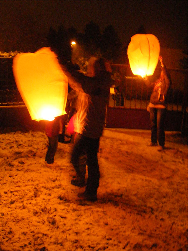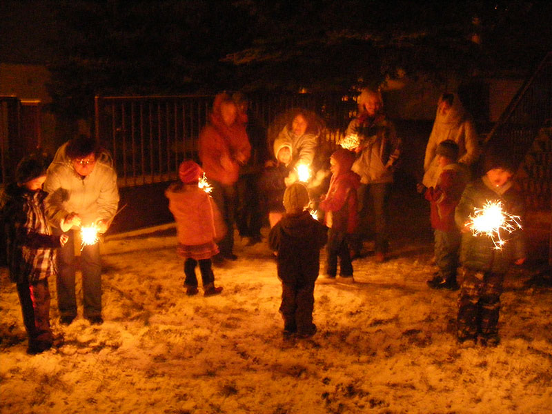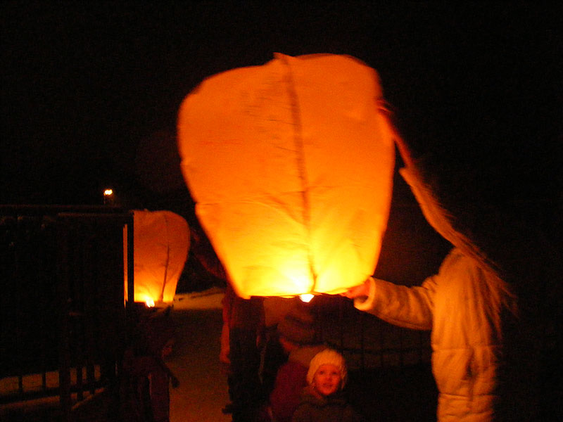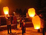 Následně jsme kreslili fixami svá vánoční přání na lampiónky štěstí a ty pak společně vypouštěli v prostoru před školkou. Zapalovali jsme také prskavky.
