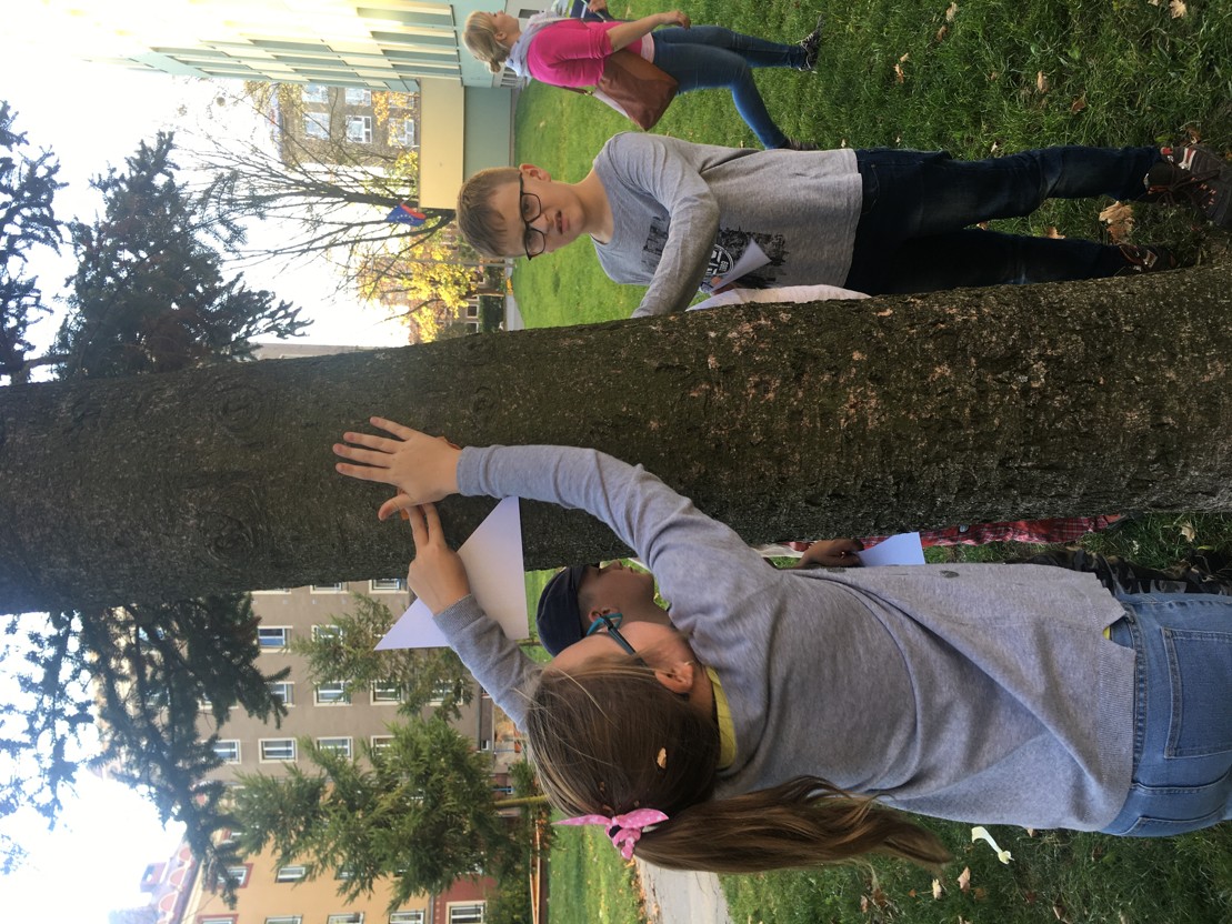 Zkoumáme stromy v nejbližším okolí. Sbíráme vzorky listů, plodů, zkoušíme udělat "otisk" kůry pomocí voskovek. Určujeme stromy podle klíče, zkoušíme určit stáří stromu podle obvodu kmene, nebo změřit výšku stromu pomocí výškoměru.