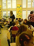 Tentokrát jsme neopustili školu ani se nerozdělili na dvě skupiny, dokonce jsme ani nerozbalili krabice s deskovými hrami. Usadili jsme se v jedné třídě a těšili se, do jakého světa nás pozve paní Hlavinková tentokráte. Už jsme s ní byli v Egyptě i ve světě Vikingů, dnes nás vzala do světa spisovatelů.