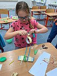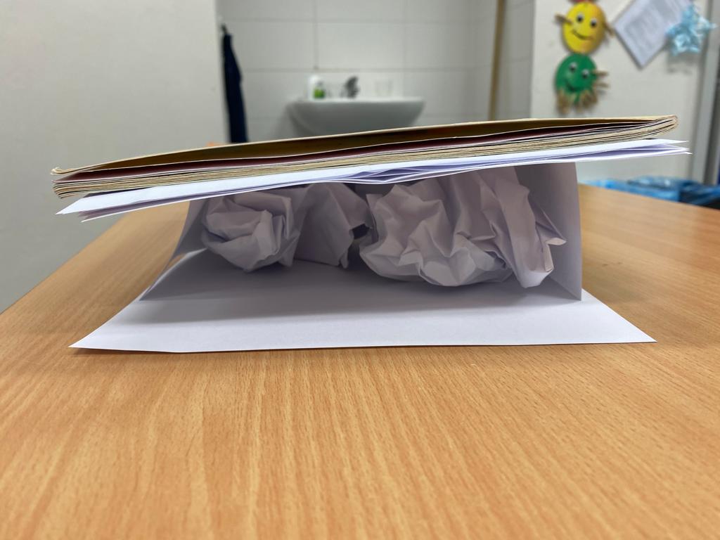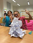 Tentokrát jsme prověřili jsme důvtip, tvořivost a taky šikovnost. Na rozehřátí nás čekala papírová stavba nejvyšší a s nejvyšší nosností. Výsledné dílo nebylo sice zrovna nápadité, ale co všechno unese 10 archů A4 nás překvapilo. Pak jsme zkusili jak šikovnou máme levou ruku a jaké by to bylo bez palce při skládání vysypaných zápalek do krabičky. A nakonec jsme z krabičky, balońku, brčka, párátka a několika dalších propriet měli sestavit dopravní prostředek, který by se přemístil vpřed (jakkoliv jinak než námi dodanou silou).