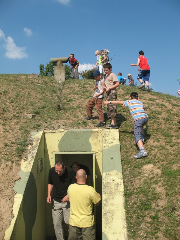 Slunce rozpálená těla jsme zchladili ve vojenských krytech místní vojenské základny pocházející z období studené války. Vojenská technika zde ukrytá nadchla hlavně kluky a v momentě, kdy si ji mohli osahat, byly nadšené i holky. Příjemný pan průvodce nechal děti nasednout i do vlastního „Ótéčka“. Že nevíte, co to je? Tak se tam s rodiči vypravte. Vřele doporučujeme.