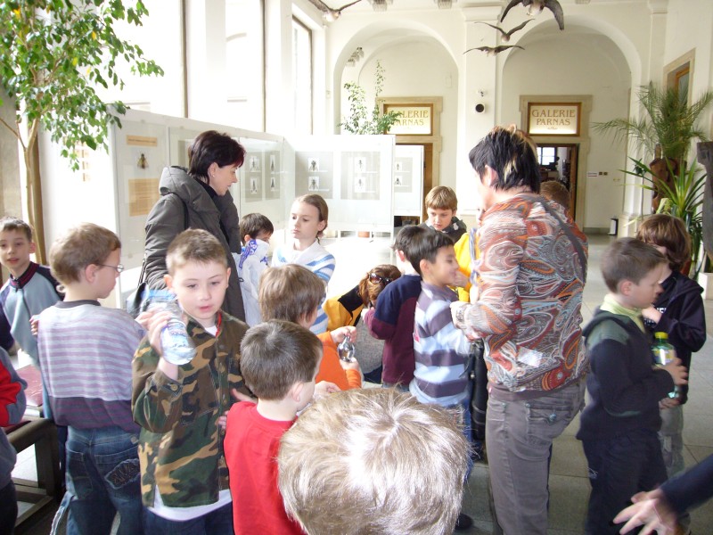 Tentokrát jsme opustili zdi naší školy a vydali se za dinosaury do Moravského zemského muzea na Zelný trh. Do kopce jsme se pěkně zapotili, překvapil nás náhlý odchod zimy. Nezbylo nic jiného, než se osvěžit balenou vodou.