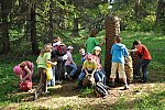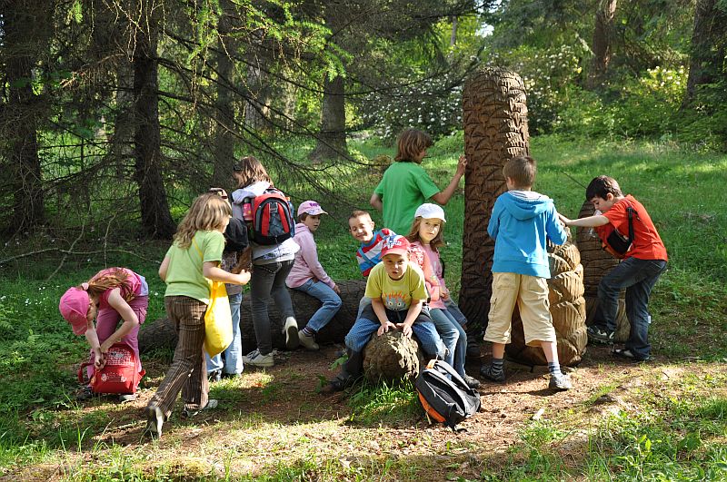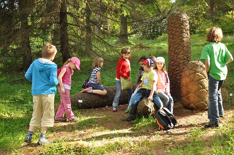 Po několika málo minutách cesty autobusem jsme se již ocitli v Arboretu, kde nás přivítala a provázela velice milá paní průvodkyně, která ochotně odpovídala na zvídavé otázky nejen nás dospělých ale i malých účastníků výpravy. Každý si jistě odnesl vzpomínku na nejednu dřevinu, kterou by si na zahradě rád vysadil pro její zajímavý kmen, rozložitou korunu nebo krásné květenství. Mezi živými rostlinami se často objevovaly dřevěné plastiky v nadživotní velikosti. Ačkoliv jsme zde strávili necelé 2 hodiny, zdaleka jsme neviděli všechno, neprošli celý areál a těšíme se tak opět někdy na viděnou ve Křtinách.
