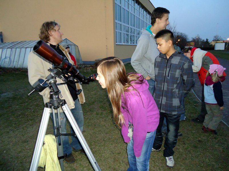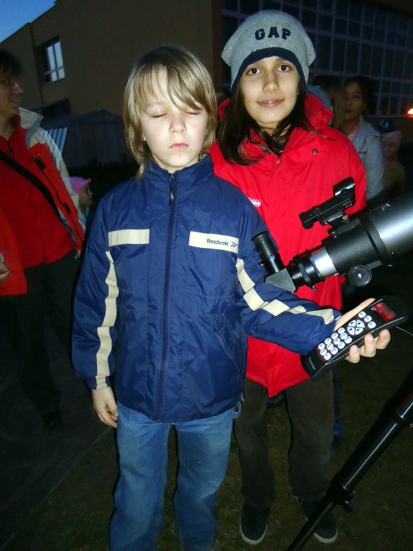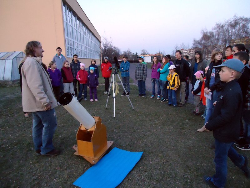 Ve středu večer totiž pod dohledem odborníků ze Znojemské astronomické společnosti pozorovali pomocí speciálních dalekohledů noční oblohu. Hřiště za školou se tak změnilo na malou observatoř, která přilákala i další nadšené „astronomy" z řad žáků, rodičů i učitelů. Pro všechny zúčastněné to byl velice zajímavý zážitek.