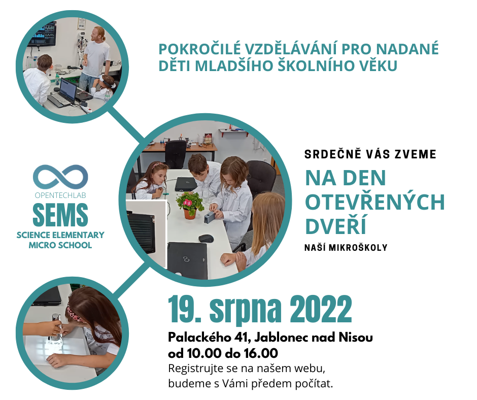 Bližší informace o SEMS i on-line přihlášku na den otevřených dveří najdete na https://www.opentechlab.cz/science-school/