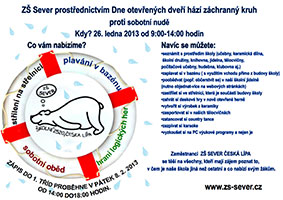Zveme všechny, kteří mají zájem poznat to, v čem je naše škola jiná než ostatní a co nabízí žákům, v sobotu 26. ledna 2013 v době od 9:00 do 14:00 na Den otevřených dveří. Více informací se dozvíte na www.zs-sever.cz.