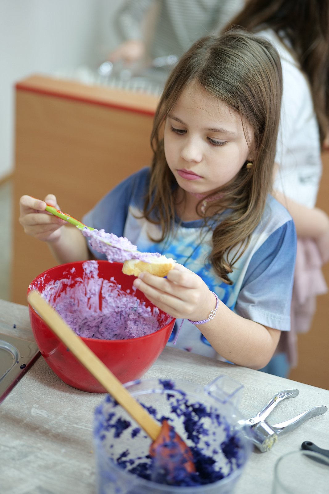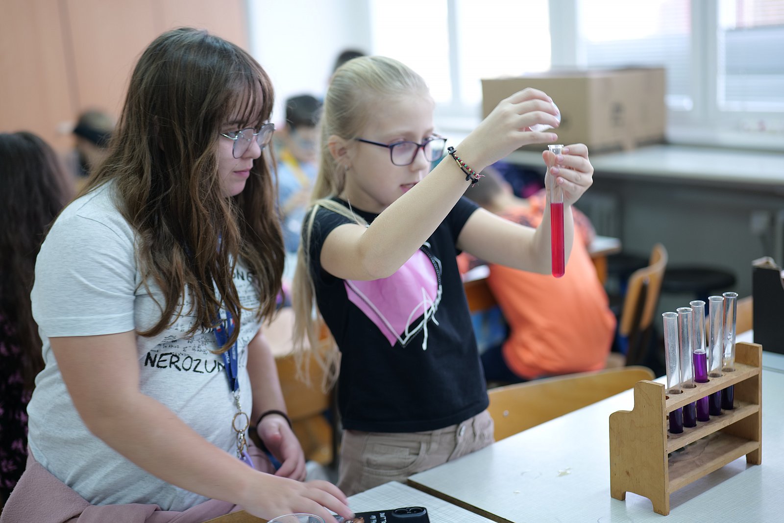 Vyrobili jsme si vlastní indikátor z výluhu z červeného zelí a otestovali jím pH citrónové šťávy, Coca-coly, minerálních vody Bílinská kyselka i naši „Lounskou vodu” nebo-li minerální vodu z lounského pramene Luna. Zelí, které nám zbylo, jsme zužitkovali ve školní kuchyňce a připravili si lahodnou a zdravou tvarohovou a krásně fialovou pomazánku. Děti si zbytky výluhu brali v lahvích domů a rodičům pak předváděli vlastní pokusy.