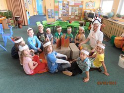Hra nás bavila, doprovázela nás p. uč. „Černé pero“ na altovou flétnu a „Vysoká žirafa“ pomáhala udržovat rytmus, pouštěla CD s indiánskými písněmi...