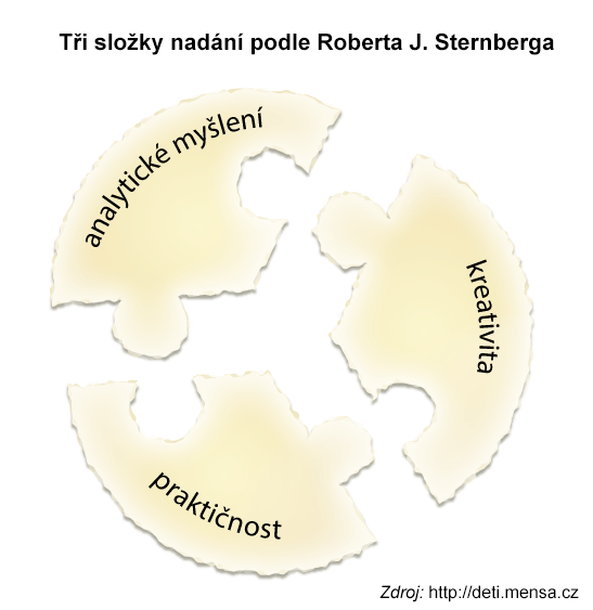 Klasické testy, kterými se psychologové pokoušejí odhalit nadané děti, kladou důraz na paměťové a analytické schopnosti. Má-li se však člověk úspěšně prosadit v každodenním životě, bude potřebovat přinejmenším dvě další dovednosti: kreativitu (neboli tvořivost) a praktičnost (praktické know-how). Na základě kreativního myšlení přicházejí děti s novými nápady, analytické myšlení jim je pomůže zpracovat a rozhodnout, které z těch nápadů stojí za další rozvíjení, a pomocí praktického know-how tyto nápady zrealizují a o jejich významu dokážou přesvědčit ostatní. Je zřejmé, že někteří lidé více vynikají v oblasti kreativity, jiným jde lépe analytické myšlení a další jsou zaměřeni spíše prakticky; pro úspěch v životě je však důležité, aby člověk alespoň do určité míry dokázal uplatňovat každou z těchto dovedností.