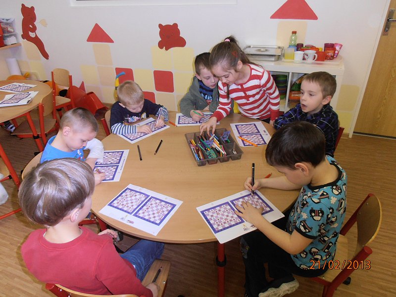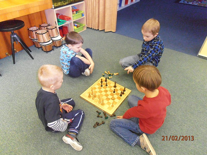„Není král jako král“ - s dětmi jsme si procvičili základní šachové tahy, vysvětlili si pravidla, vyzkoušeli na pracovním listě tah věží, vyráběli jsme si královskou korunu a hádali hádanky.