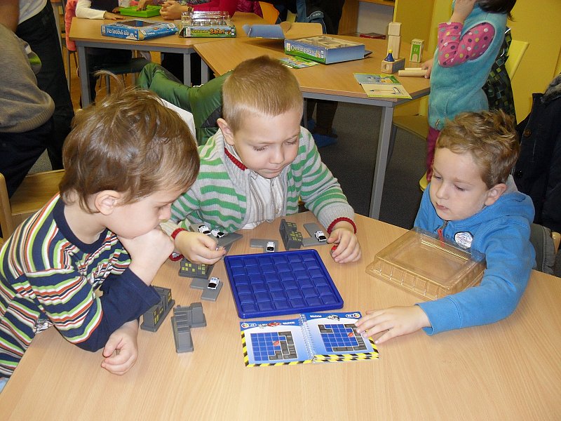 Této nabídky využily v závěru roku 2012 paní učitelky z mateřské školy na Ladech. S vybranými dětmi strávily v Heuréce hezké dopoledne. Vyzkoušely si tak řadu různých her či hlavolamů, které všechny děti i dospělé nepochybně zaujaly. Doufáme, že příjemné chvíle prožité v Heuréce se současně staly pro všechny i přínosem, neboť jim umožnily rozvíjet logické myšlení a znalosti.