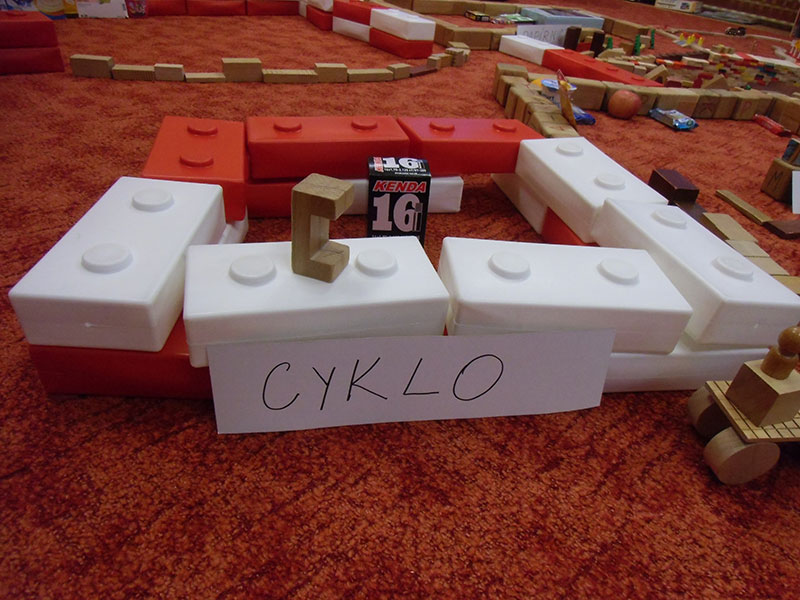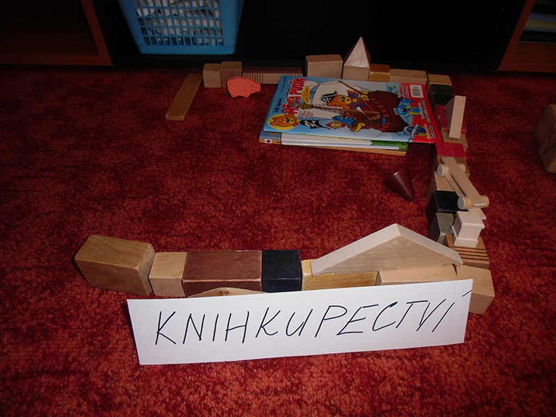 Společně jsme četli nápisy na obchodech a děti se je učily napodobit či napsat. Každý pracoval na takové úrovni, na jaké mu to vyhovovalo. Někdo nám předčítal, někdo si hláskoval a jiný jen napodobil grafickou podobu psaného slova. Hlavní bylo vnímat informace, které nás obklopují a zkoušet s nimi pracovat.
