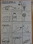 Pracovali jsme s čísly do 10. Děti se učily zapsat číslici a k ní nakreslit odpovídající počet koleček, tedy odpovídající počet korun.
