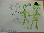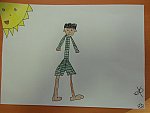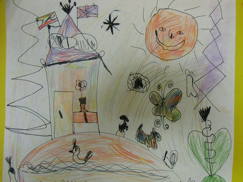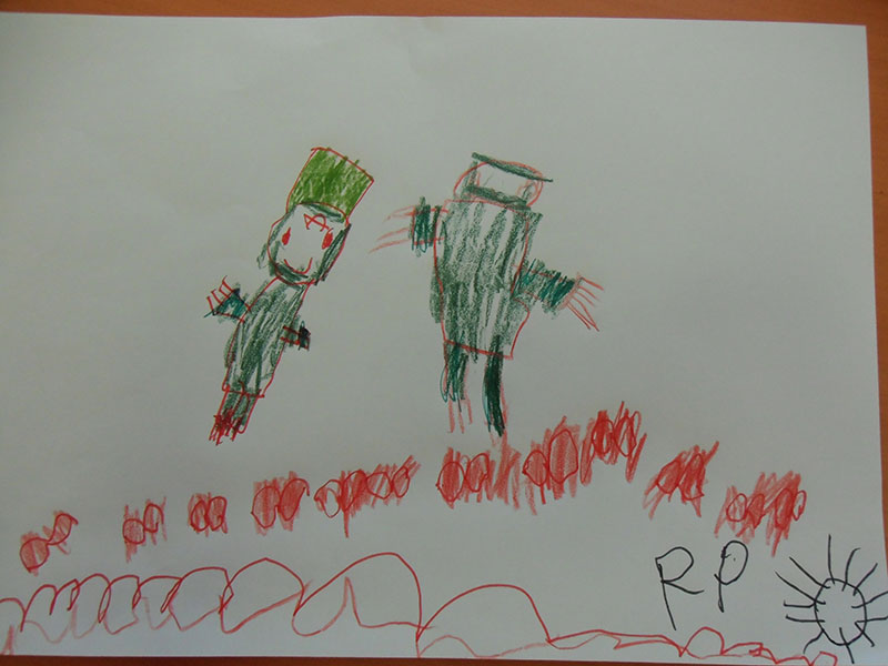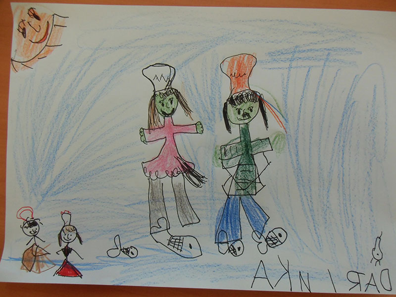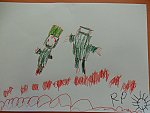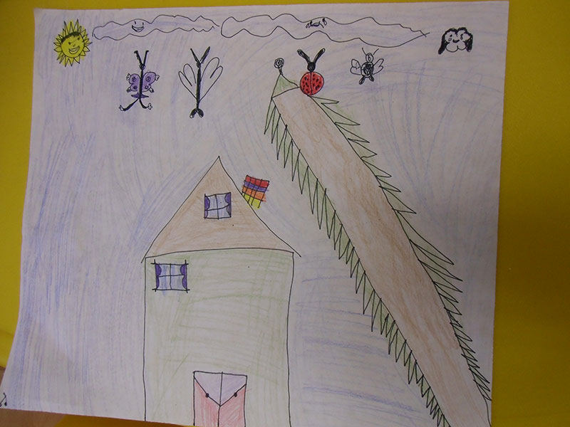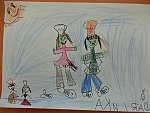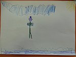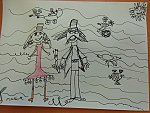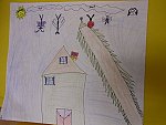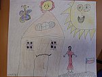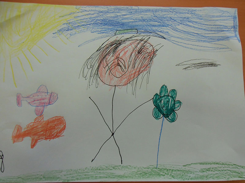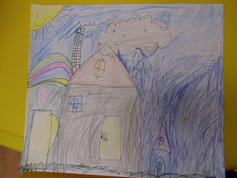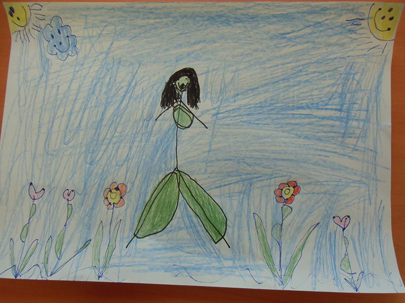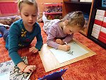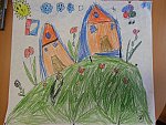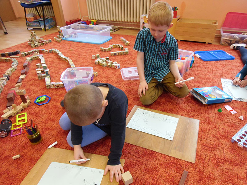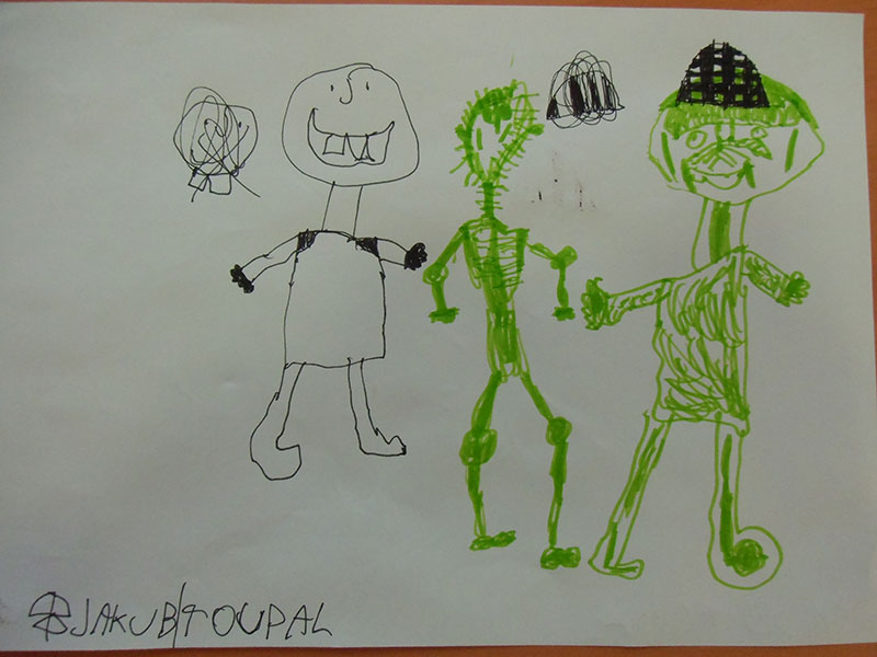 Pokud chceme, aby se děti v kresbě více zaměřily na zpracování detailu, můžeme jim nabídnout grafický materiál s tenkou stopou. Tentokrát děti použily na konturu černé centrofixy v hotových pracích se opravdu objevilo zakreslení detailů ve větší míře, než pokud děti pracují pouze s pastelkami.