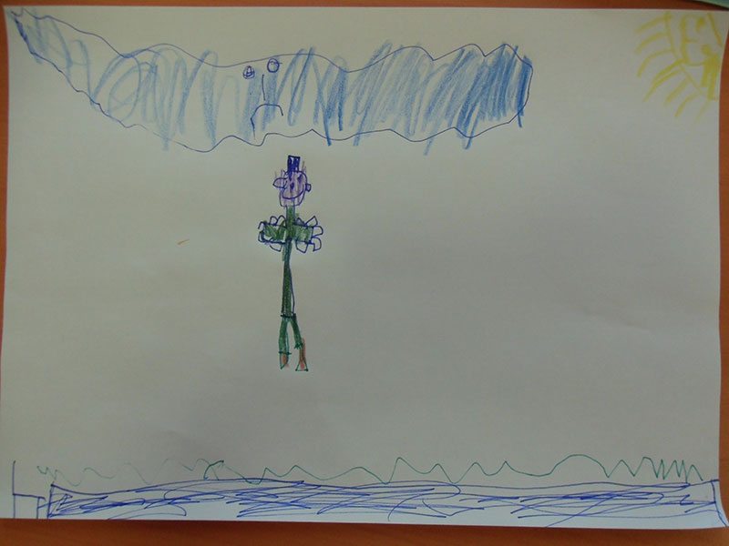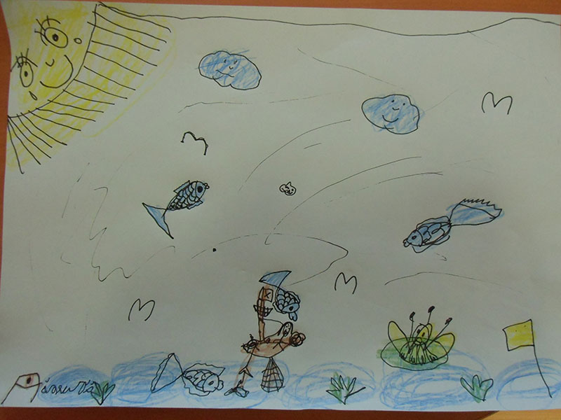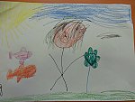 V druhém videu je zachyceno výtvarné zpracování pohádky „O vodníkovi, který se chtěl ženit“. Výtvarná aktivita následovala po návštěvě divadla v MŠ. K bezprostřednímu zachycení zážitků jsme použili centrofixy a progresa.