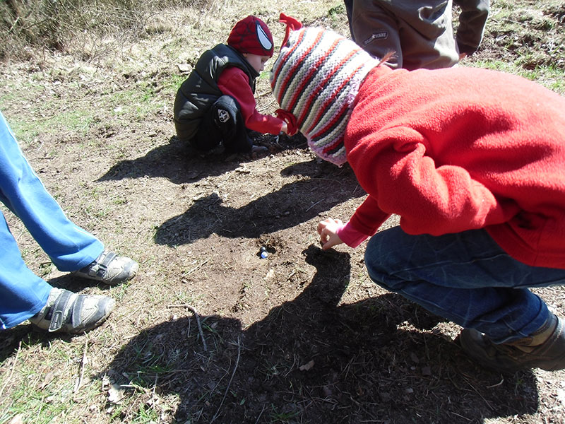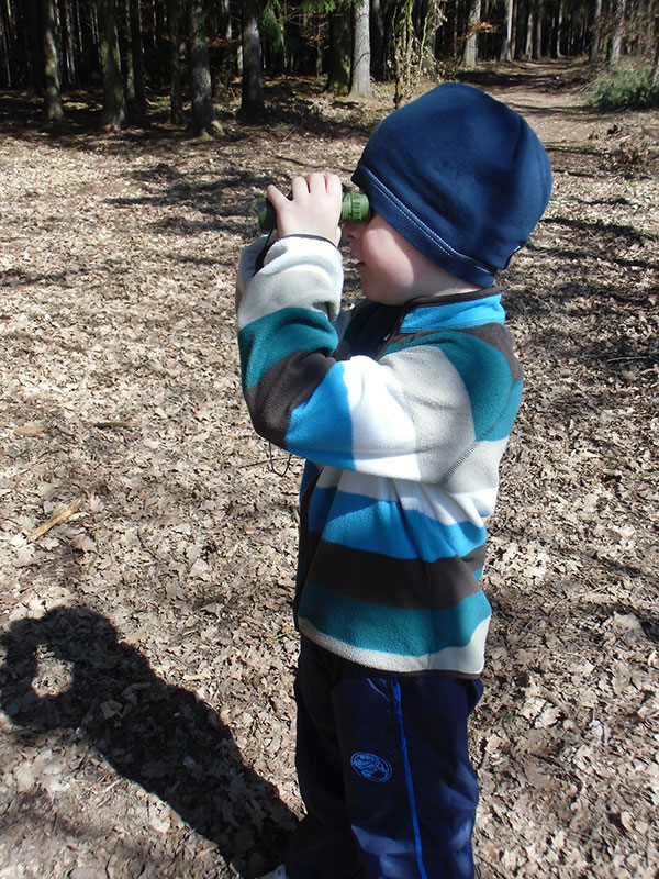 Dlouho očekávané jaro konečně dorazilo a tak jsme vyrazili na dlouhou procházku do blízkého lesa s dalekohledy a lupami na pozorování, a pro zábavu se sáčkem kuliček.