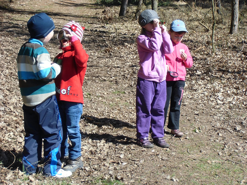 Vycházka do lesa s kuličkami, lupami a dalekohledy