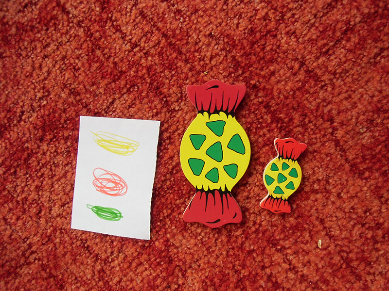 K aktivitě, ve které jsme třídili dle barev, jsme použili společenskou hru barevné bonbóny, a pravidla jsme si upravili podle sebe.