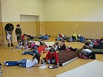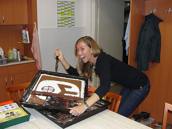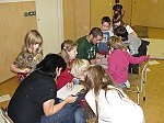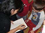 Páteční klub měl pestrý program a velké sladké překvapení. Nejdříve proběhlo fotografování před budovou I. stupně u odhalené plakety „Škola spolupracující s Mensou". Hostem klubu byl p. ředitel, který rozkrájel perníkový dort se symboly naší školy. Pak už začaly slibované souboje v piškvorkách. Prvňáci proti druhákům, třeťáci, čtvrťáci, páťáci poráželi jednoho soupeře za druhým. A ani učitelé se nezastavili. Křížky, kolečka, křížky, kolečka. To byla úžasná bitva!