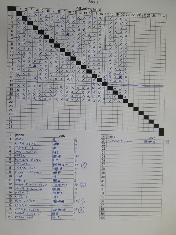 V pátek 15.3. 2013 se v Klubu odehrálo téměř 190 utkání v piškvorkách. Sešlo se 21 přeborníků a hrálo se systémem každý s každým.